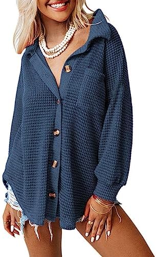 Dokotoo Womens Waffle Knit Shacket Jacket Casual L