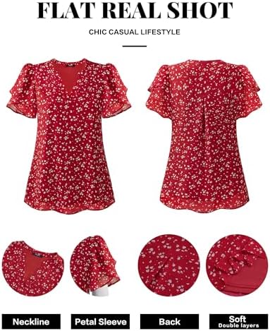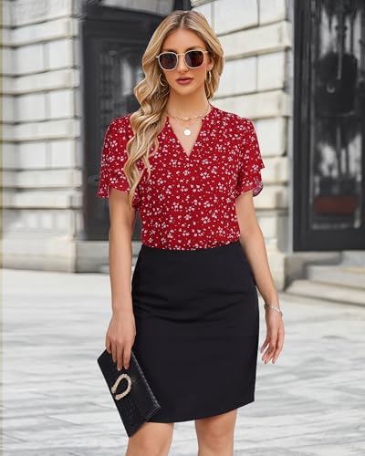 Lotusmile V Neck Floral Shirts Cute Summer Tops for Women Dressy Casual