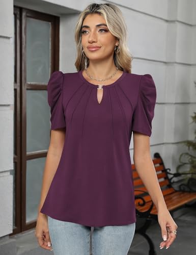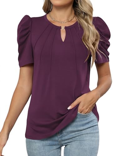 LUYAA Puff Short Sleeve Shirt for Women Dressy Cas