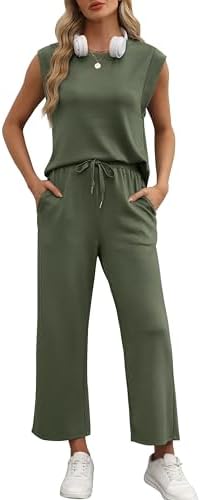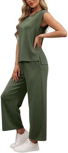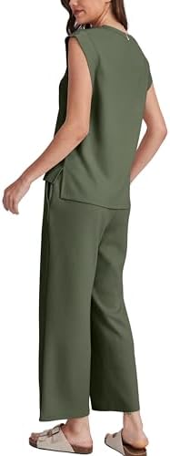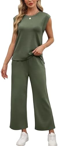 OFEEFAN Beach Vacation Clothes for Women 2 Piece Sets Cap Sleeve Wide Leg Pants