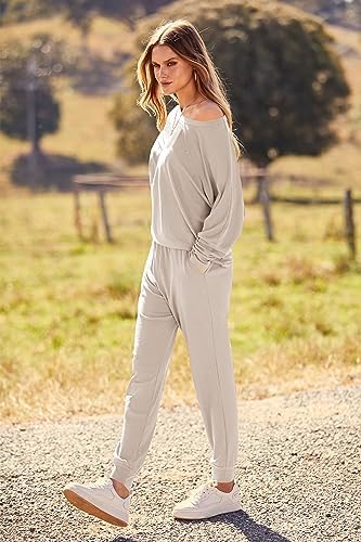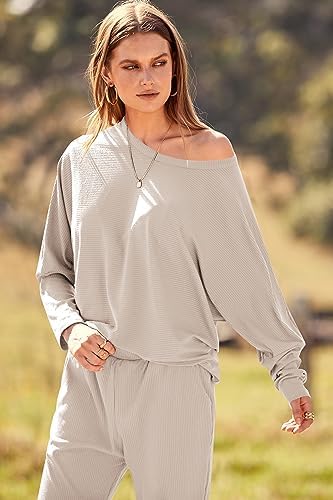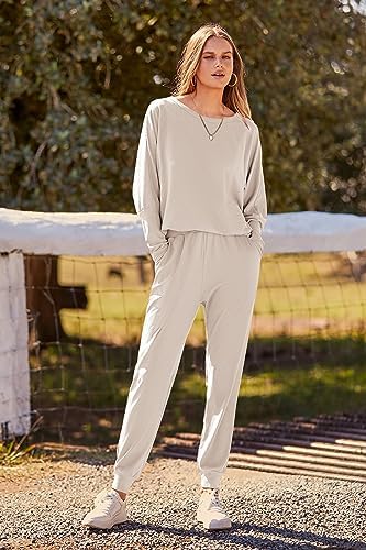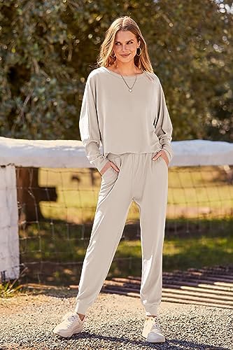 PRETTYGARDEN Fashion Batwing Long Sleeve Pullover Sweatshirts and Joggers Set for Women