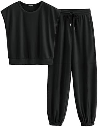 PRETTYGARDEN Women’s 2 Piece Set Casual Cap Sleeve Pullover Tee Shirt